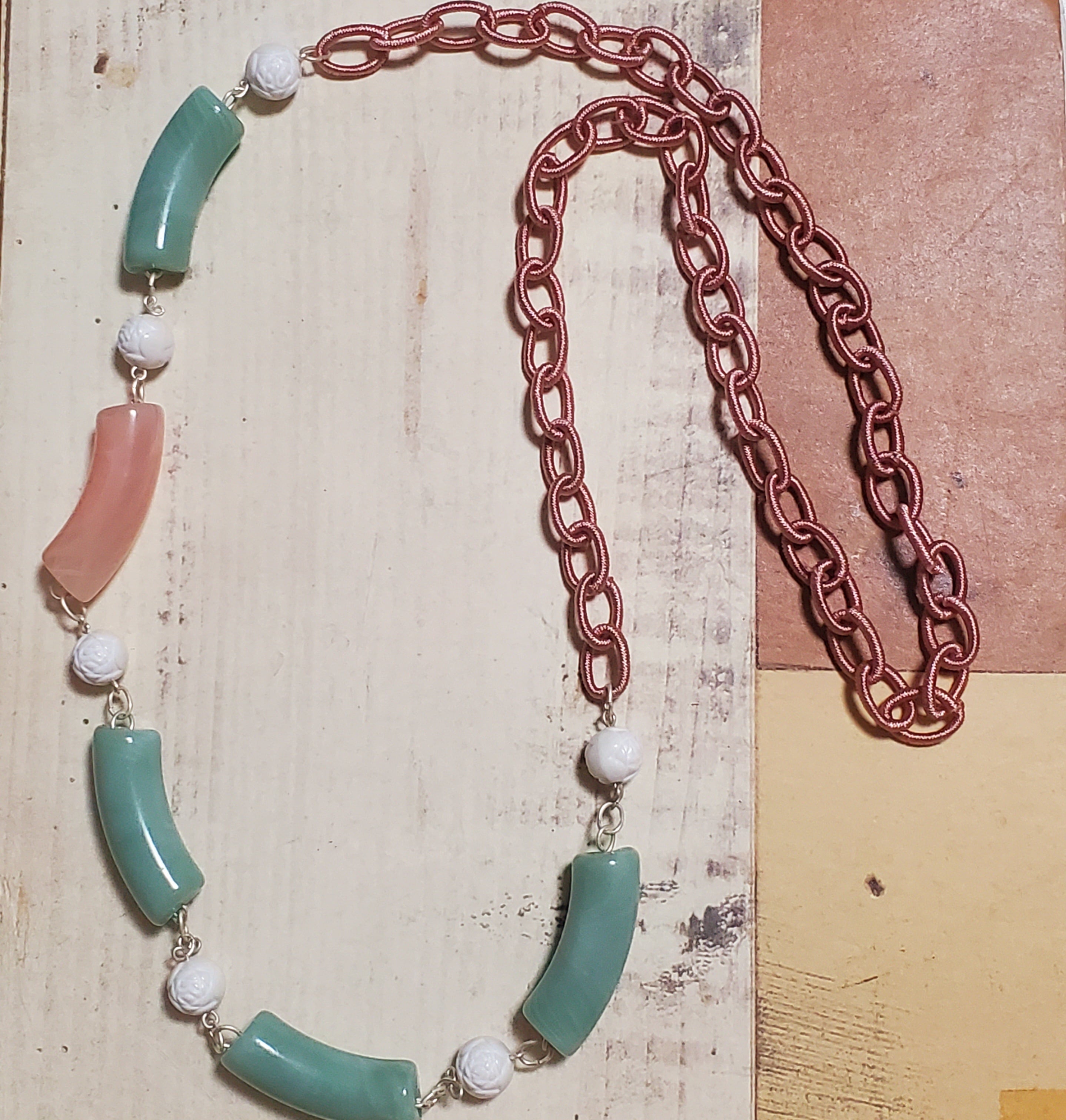 アスパラみたいな形のビーズと白いフランスヴィンテージビーズをあわせました。