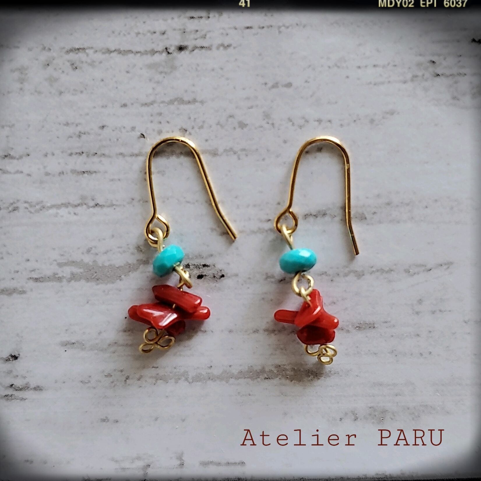 【赤色水色】バカンス気分~ピアス~珊瑚とターコイズ~イヤリング