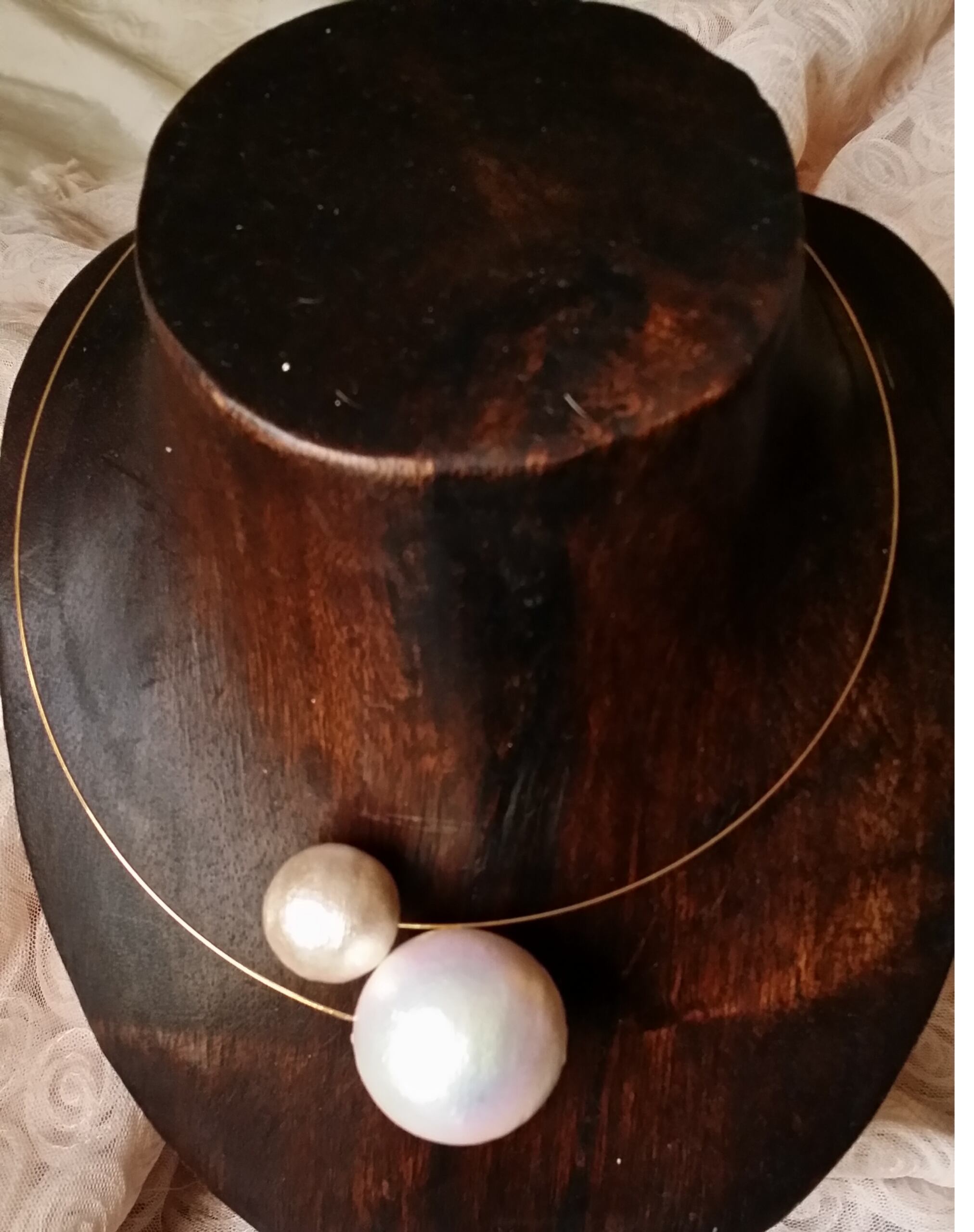 地球と月をイメージしたコットンパールのネックレス。宇宙のシリーズの1つです。