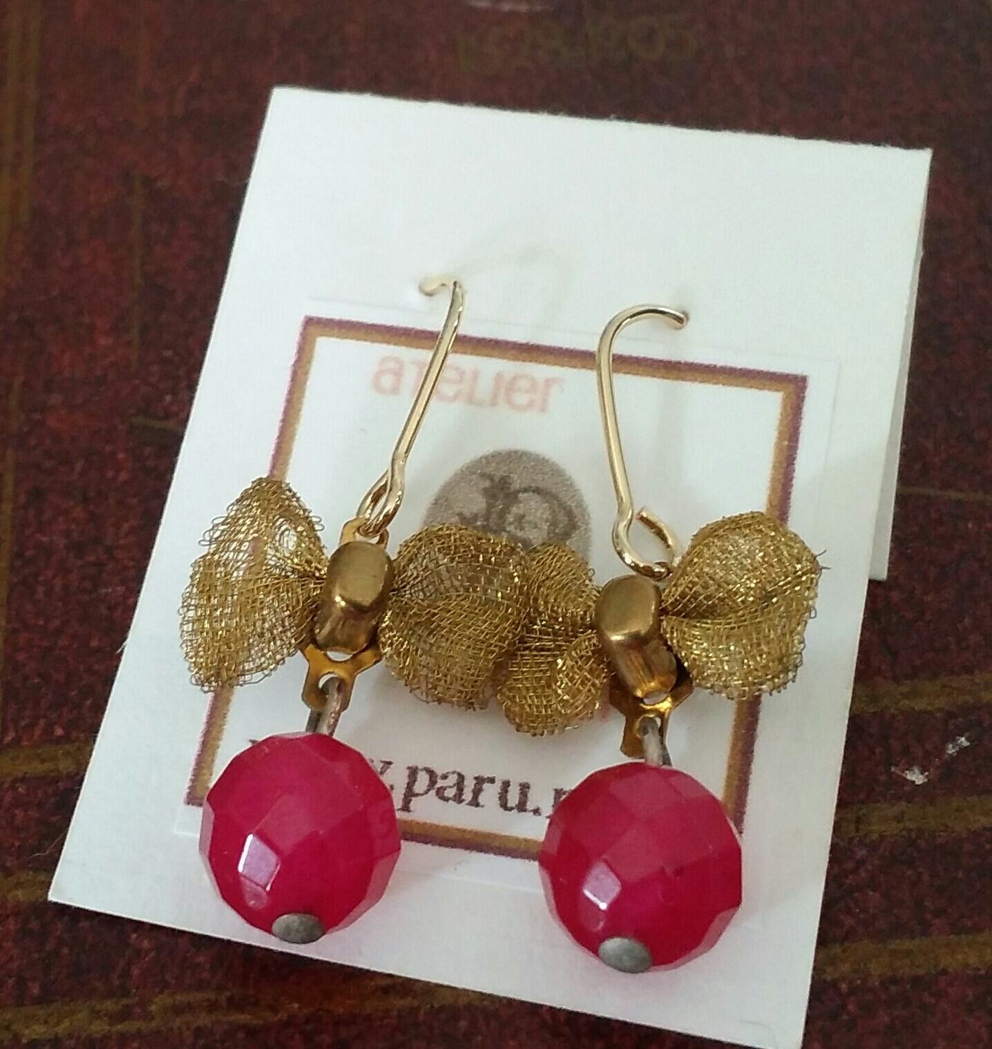 カルセドニーにヴィンテージのリボンをあしらった元気でかわいいイヤリング
