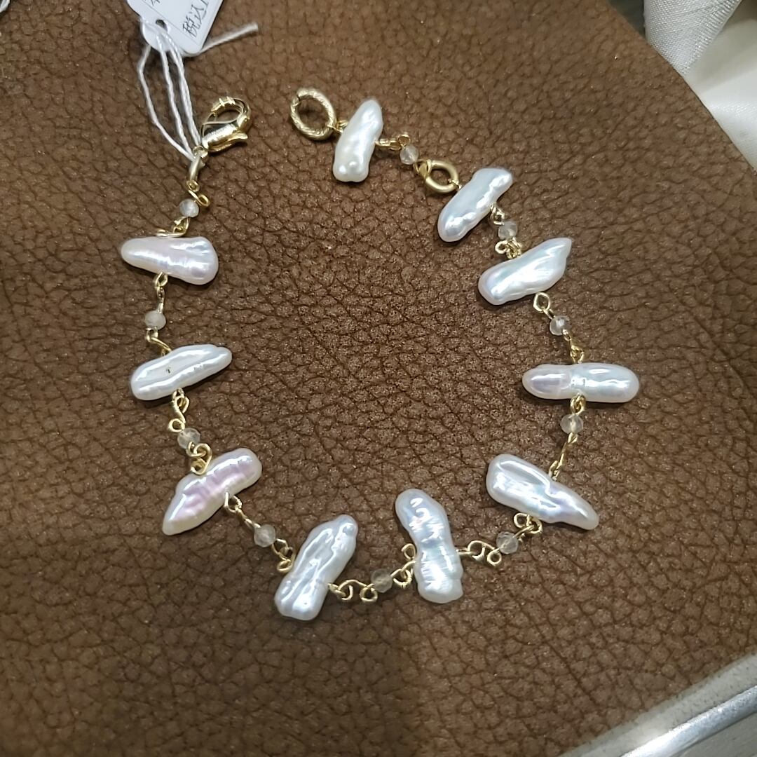 ロマンチックなケシパールととても小さなキラキラとしたラブラドライトとのコンビブレスレット